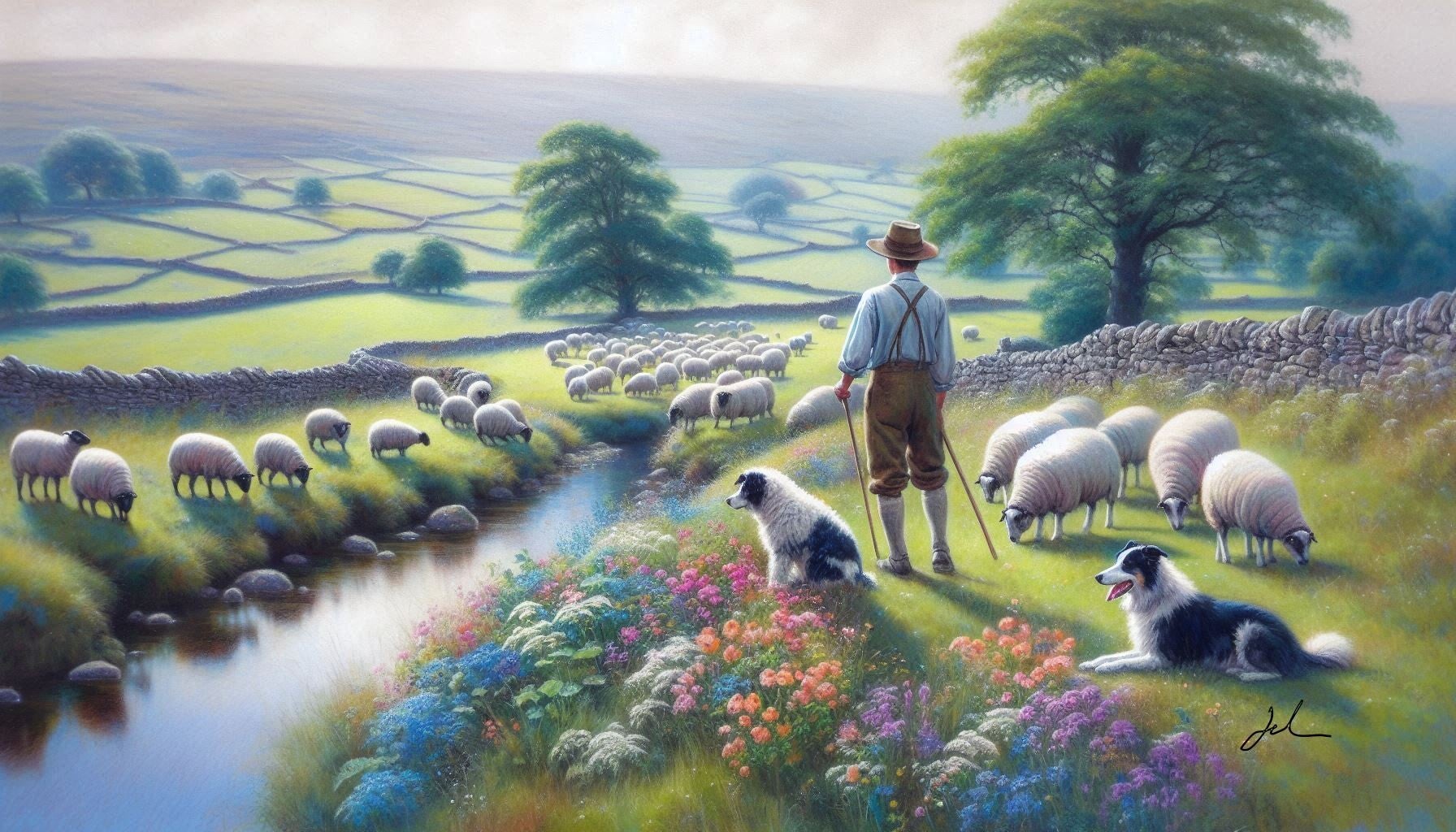 His fences firm, his hounds well-trained, his word the law for sheep.
